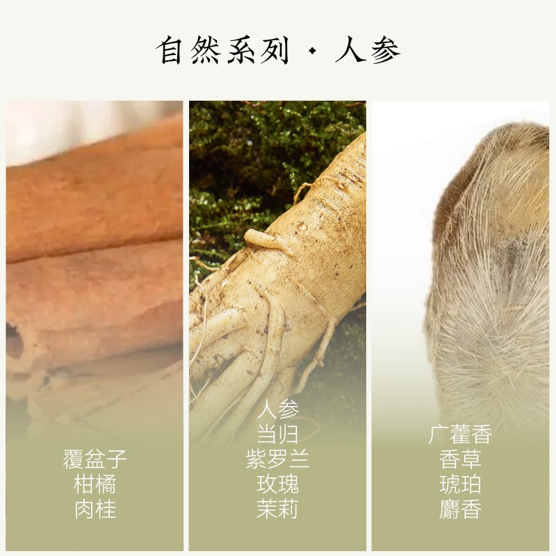 Crisp citrus and mint slice through earthy ginseng roots, leaving only their invigorating pulse. Midnotes of violet and jasmine weave a dewy floral veil, while vanilla-amber musk whispers "dawn in a dew-kissed herb garden". 3-5h energy transfusion.清新草本香夹杂一丝白花淡淡的甜,摒弃人参的泥土味,只留下些许根茎的味道,淡淡的,闻了让人安心,元气感满满